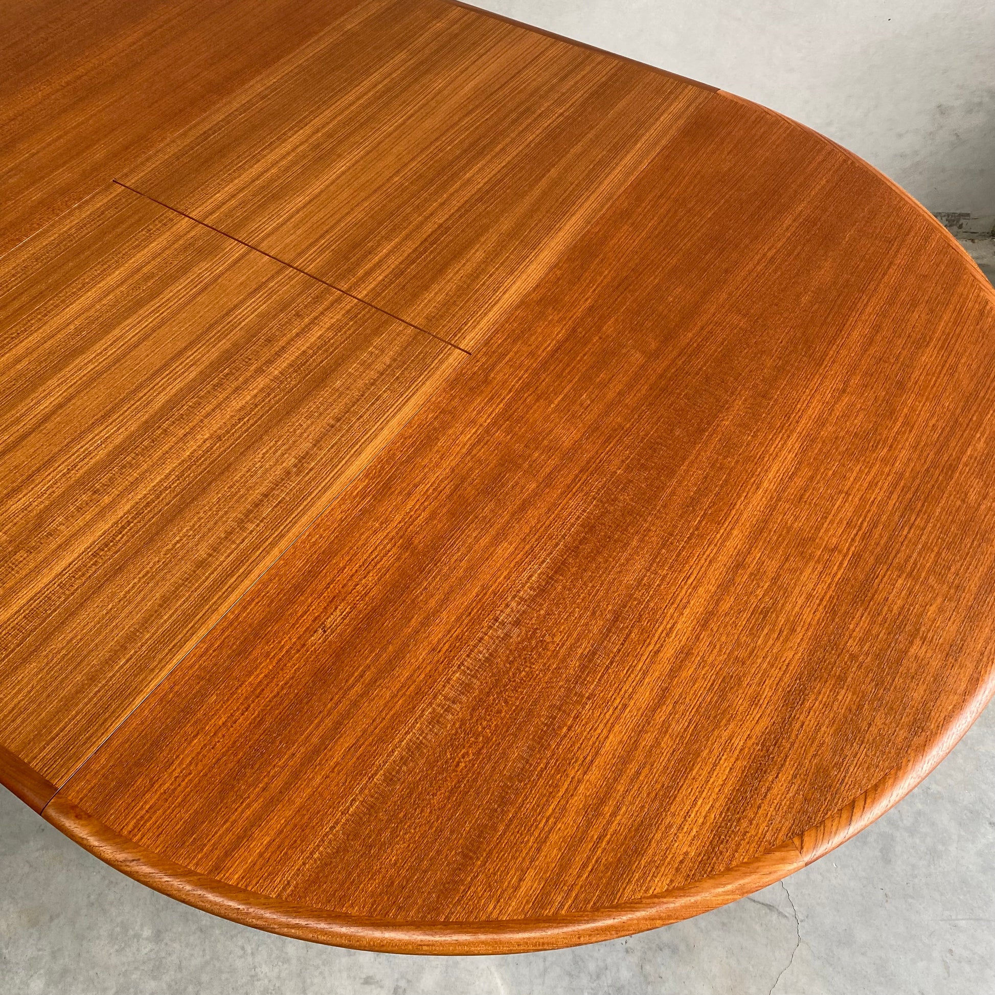A previous restoration has meant that the table has a small lighter patch where the veneer is thinner, this can be seen in the second last photo. This is less noticeable from certain angles, and if you’re the type to use place mats it will be covered. The price reflects this imperfection, as this table would be listed for $1,800 without it.